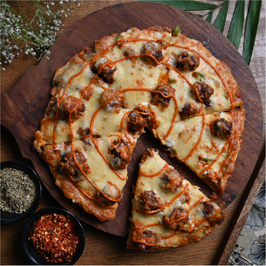• Relish the smoky, spicy goodness of our Paneer Tikka Pizza!